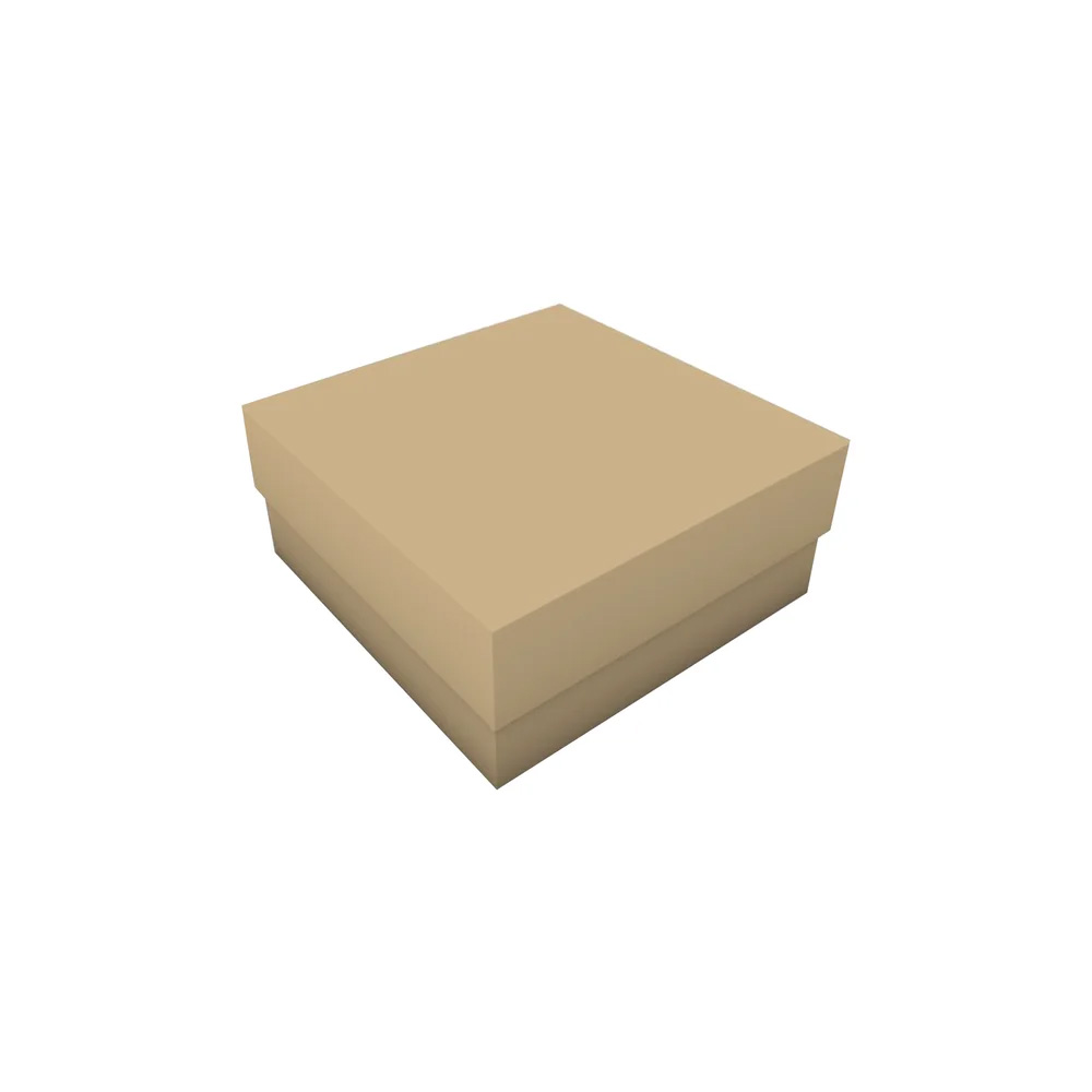 Caixa quadrada resistente, ideal para transportar sobremesas individuais ou pequenas porções.